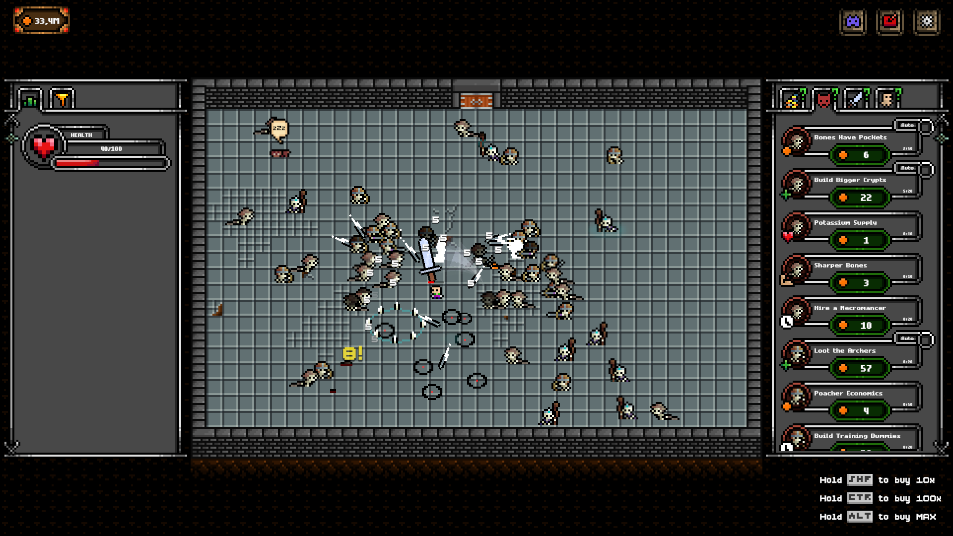 That One Dungeon Room is a fast-paced incremental action game where you swing your sword with your mouse, cut through endless hordes of enemies, and collect coins to grow stronger with every run.